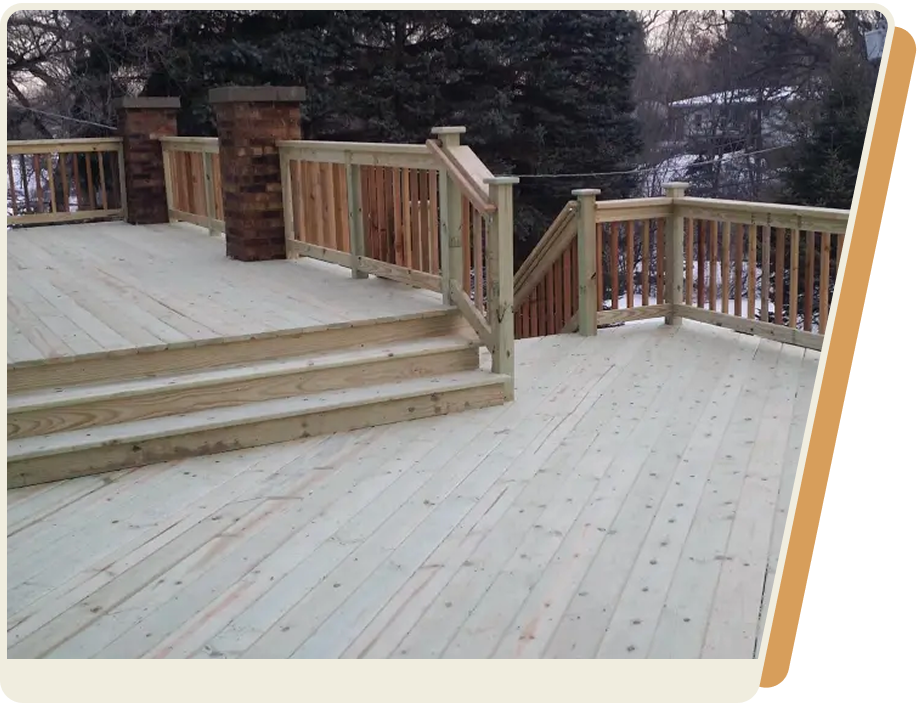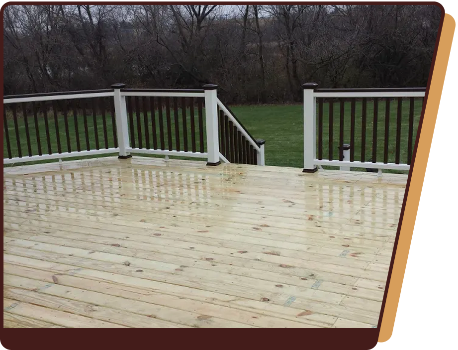 Treated wood decks offer exceptional resistance to rot, moisture, and insects, making them an excellent option for Northern Illinois’ ever-changing climate. With proper construction, your deck maintains its strength and appearance season after season. Our team ensures every board is installed with precision, maximizing both durability and visual appeal.